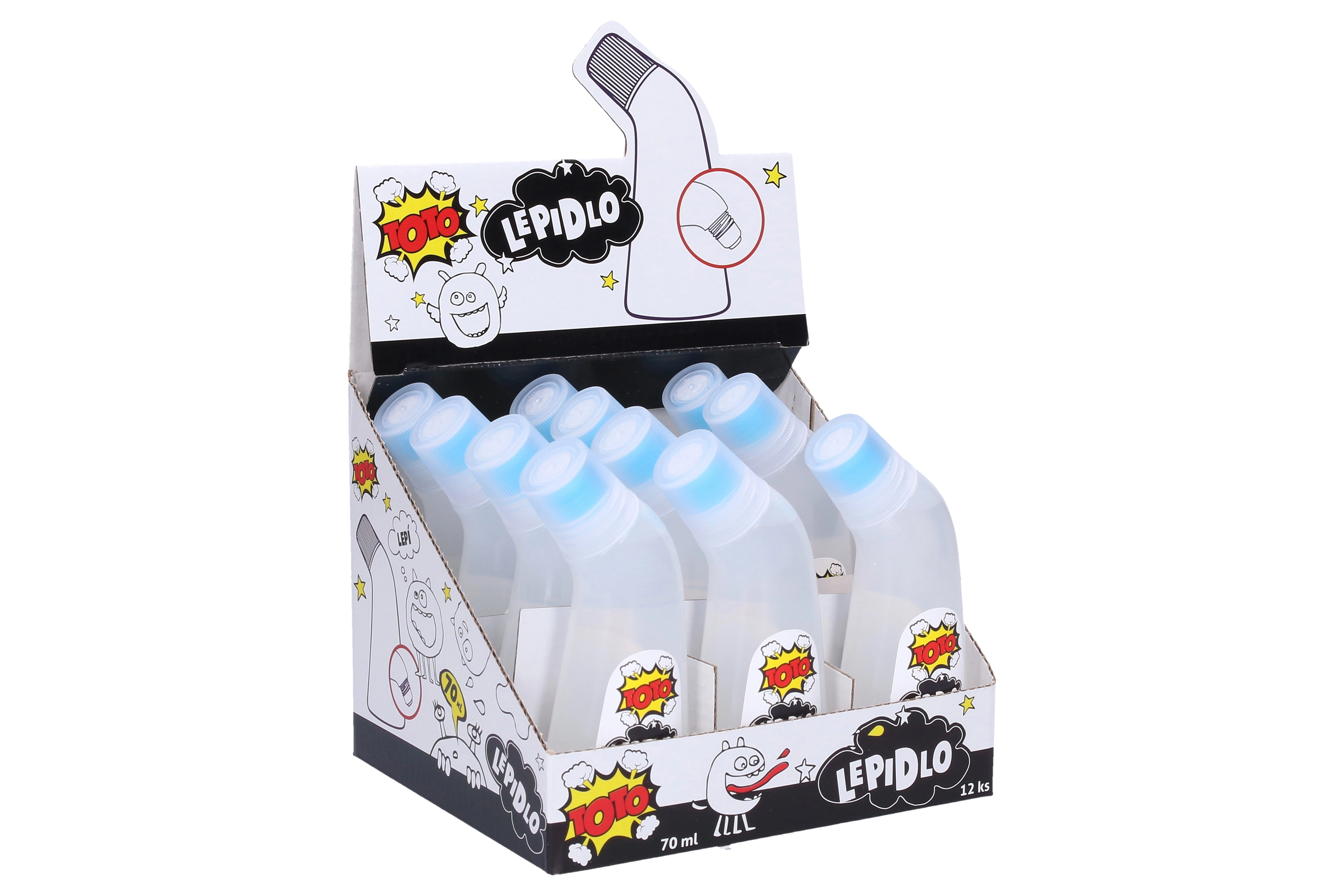 Универсално течно лепило TOTO за лесно и чисто лепене в дома, офиса и училище. Нанасянето е удобно чрез стискване на бутилката, което осигурява прецизно дозиране и минимален безпорядък. Обемът 70 мл е достатъчен за дълготрайна употреба.