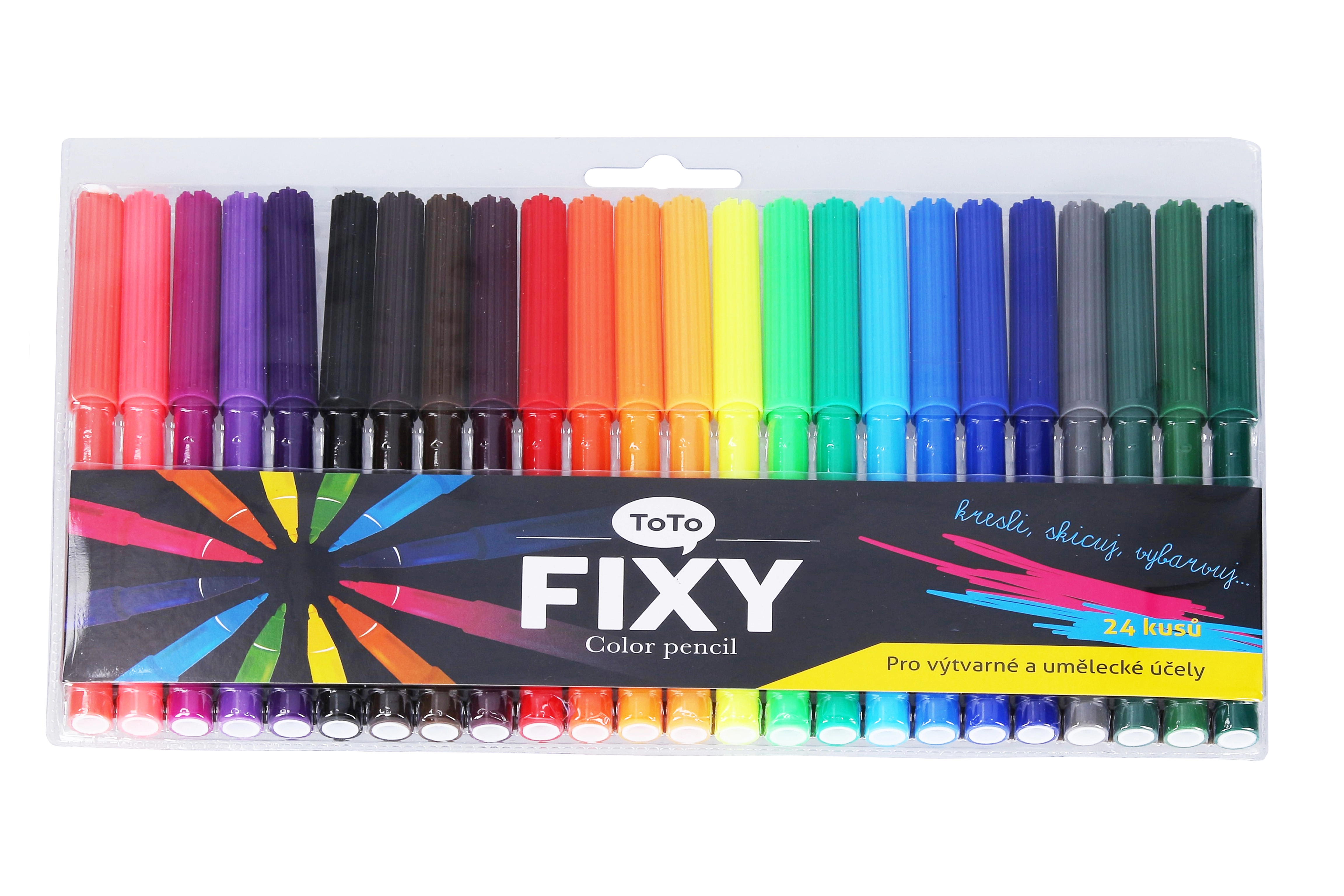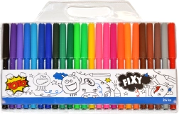 Открийте универсалния комплект от 24 цветни флумастера, който ще зарадва малки и големи творци. Благодарение на влакнестия връх флумастерите се плъзгат удобно по хартията и осигуряват плавна, наситена линия. Идеални са за скициране, оцветяване и писане на заглавия.