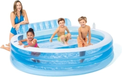Семейният надуваем басейн INTEX предлага просторно къпане за деца и възрастни, интегрирана пейка с облегалка за удобна почивка и държачи за напитки за максимален комфорт. Издръжлив PVC материал, клапан за бързо източване и включена самозалепваща лепенка го правят идеален избор за градината в горещите дни.