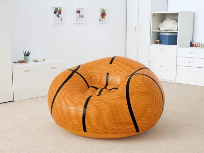 Насладете се на забавление и релакс на удобния и мек стол, който с външния си вид напомня истинска баскетболна топка. Чудесно допълнение към интериора на феновете на баскетбола, придавайки на пространството модерен, игрив стил. Гладката повърхност се почиства лесно, а издръжливият PVC материал осигурява дълъг живот и проста поддръжка.