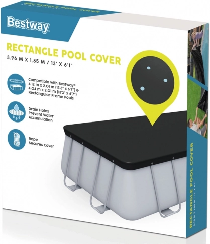 Покривалото за басейн Bestway е проектирано за употреба с наземни конструктивни басейни и осигурява ефективна защита от насекоми, птици, листа и лек дъжд. Също така предпазва децата от нежелано падане в басейна.