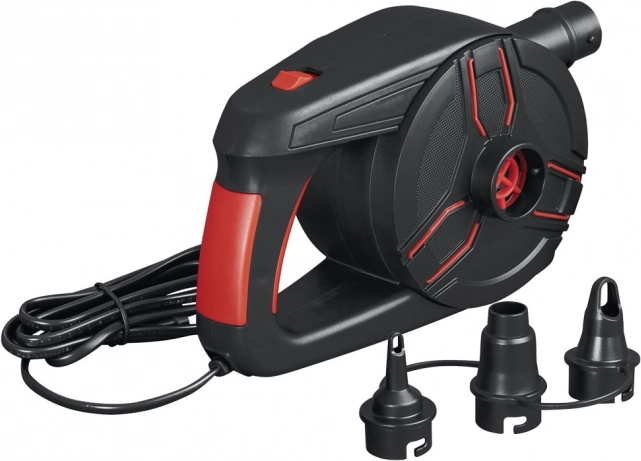 Тази електрическа помпа от марката Bestway комбинира силна мощност с универсална съвместимост. Оборудвана е с три универсални вентила, което я прави идеална за различни надуваеми предмети, като дюшеци, басейнови играчки и други. С въздушен дебит 1100 л/мин помпата гарантира бързо напомпване и може лесно да се превключи в режим на източване за по-лесно съхранение. Помпата се захранва от домашен контакт 220 V и достига налягане 0,97 PSI, което я прави подходяща и за по-големи предмети, изискващи по-високо налягане.