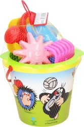 Насладете се на безгрижна игра в пясъчника с комплект с мотив Кърт. Този голям жълт комплект за пясък включва всичко необходимо: кофичка 3,5 l, сито, 2 формички, лопатка, гребло и лейка – идеален за креативно строене и забавления навън.