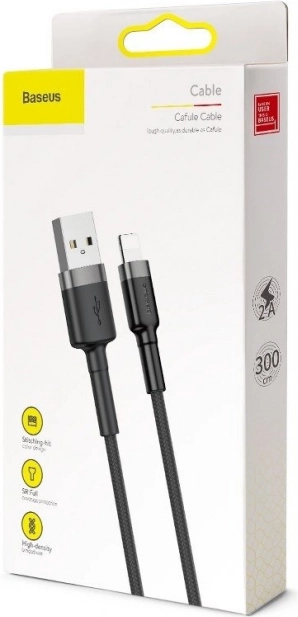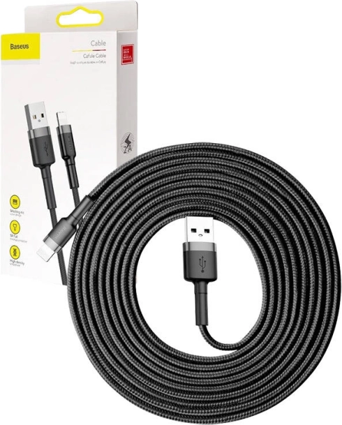 Удълженият кабел BASEUS Cafule USB–Lightning с дължина 3 метра ви дава свобода при зареждане и работа с телефона на дивана, в офиса или до леглото. Благодарение на качествената изработка с найлонов оплет и подсилени алуминиеви накрайници кабелът е изключително устойчив на огъване и износване.