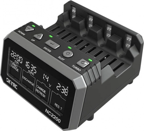 Мощният процесор Cortex‑M3 оптимизира параметрите в реално време и защитава клетките чрез усъвършенствани схеми. VA дисплеят с висок контраст показва ток, капацитет, напрежение и време, докато LED индикацията информира за процеса в отделните слотове. Свързването чрез Bluetooth и приложението SkyCharger ви дава детайлен преглед и контрол над целия процес.