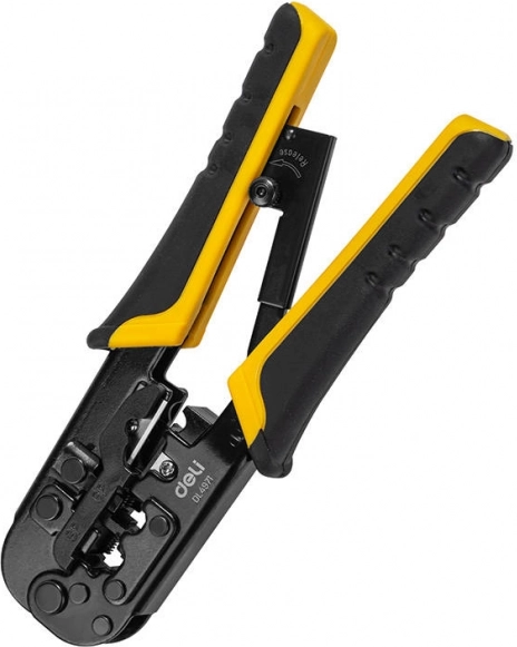 Ергономичните, антихлъзгащи дръжки намаляват умората на ръцете, а тресчотъчният механизъм помага да се поддържа равномерен натиск за стабилни и повторяеми връзки – идеално за конектори RJ45/RJ14/RJ12/RJ9 и окабеляване UTP и STP.