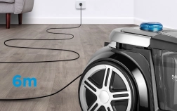 В комплекта са включени тесен накрайник за тесни места, четка за тапицерия и кръгла четка за прах. Телескопичната тръба и маркучът 1,5 m улесняват почистването под мебели и на височина. Благодарение на държача ще имате аксесоарите винаги под ръка.