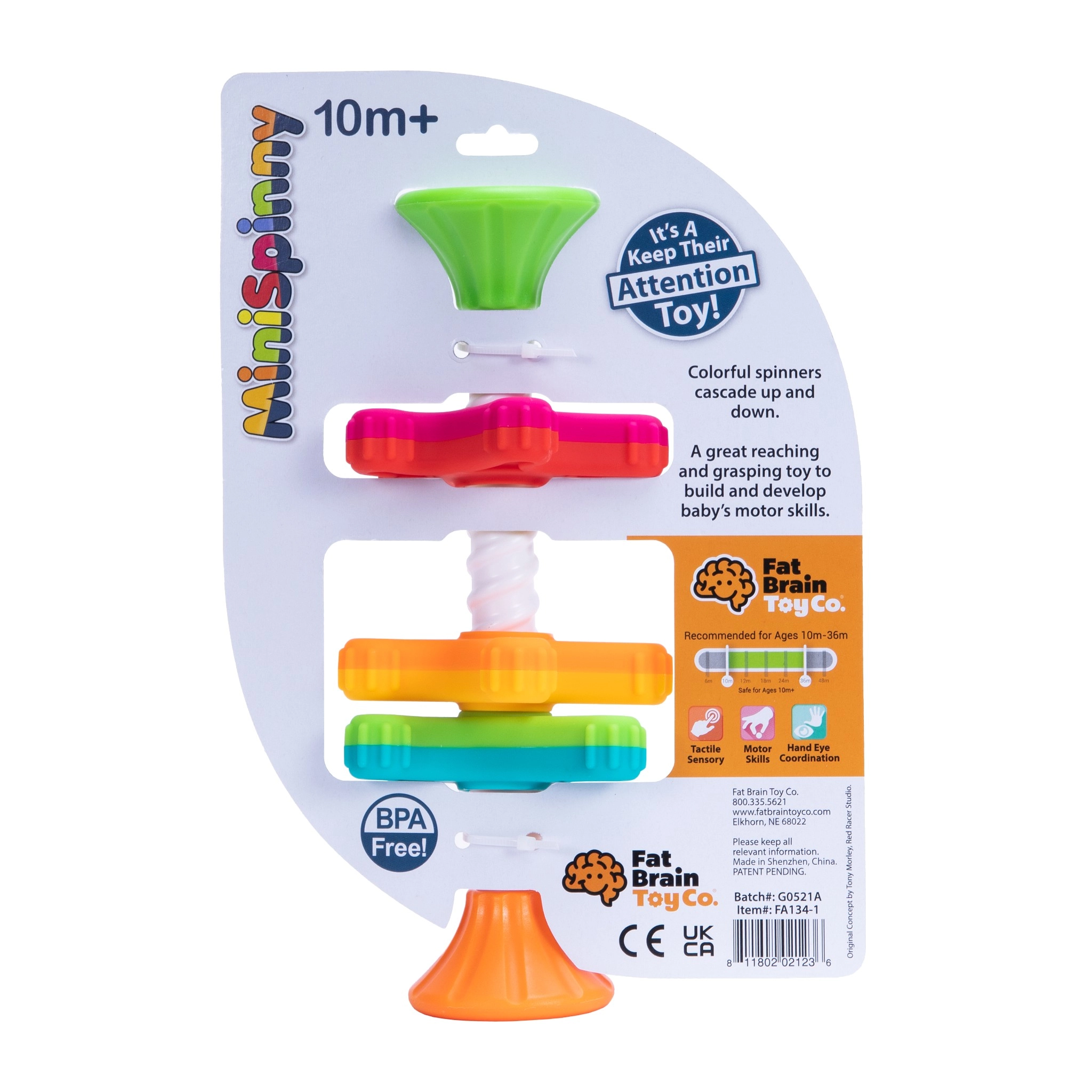 Забавна и безопасна играчка за най-малките: MiniSpinny предлага въртящи се дискове, ярки цветове и текстуриран релеф за сетивно изследване. Благодарение на стабилната вендуза стои върху гладки повърхности, подпомага фината моторика, координацията око-ръка и ученето на цветове и базово броене.