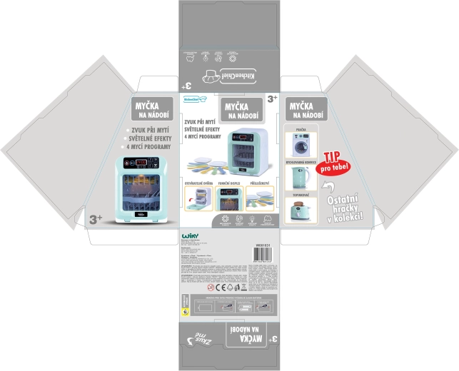 Забавната детска миялна машина превръща почистването в игра! Предлага светлинни и звукови ефекти, 4 програми за миене и възможност за настройка на време. Идеална за малки домакини от 3 години – просто поставете съдовете, изберете програма и забавлението започва.