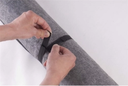 След приключване на сесията поставете тубуса върху подложката с пъзела, просто го навийте и фиксирайте с включените велкро ленти. Всичко остава на мястото си и нищо не се губи.