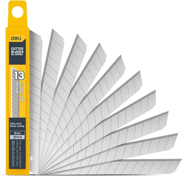 Този универсален нож от марката Deli Tools е предназначен за професионална и домашна употреба. Оборудван е със сменяемо острие с ширина 9 мм, което гарантира прецизност и точност при всеки разрез.
