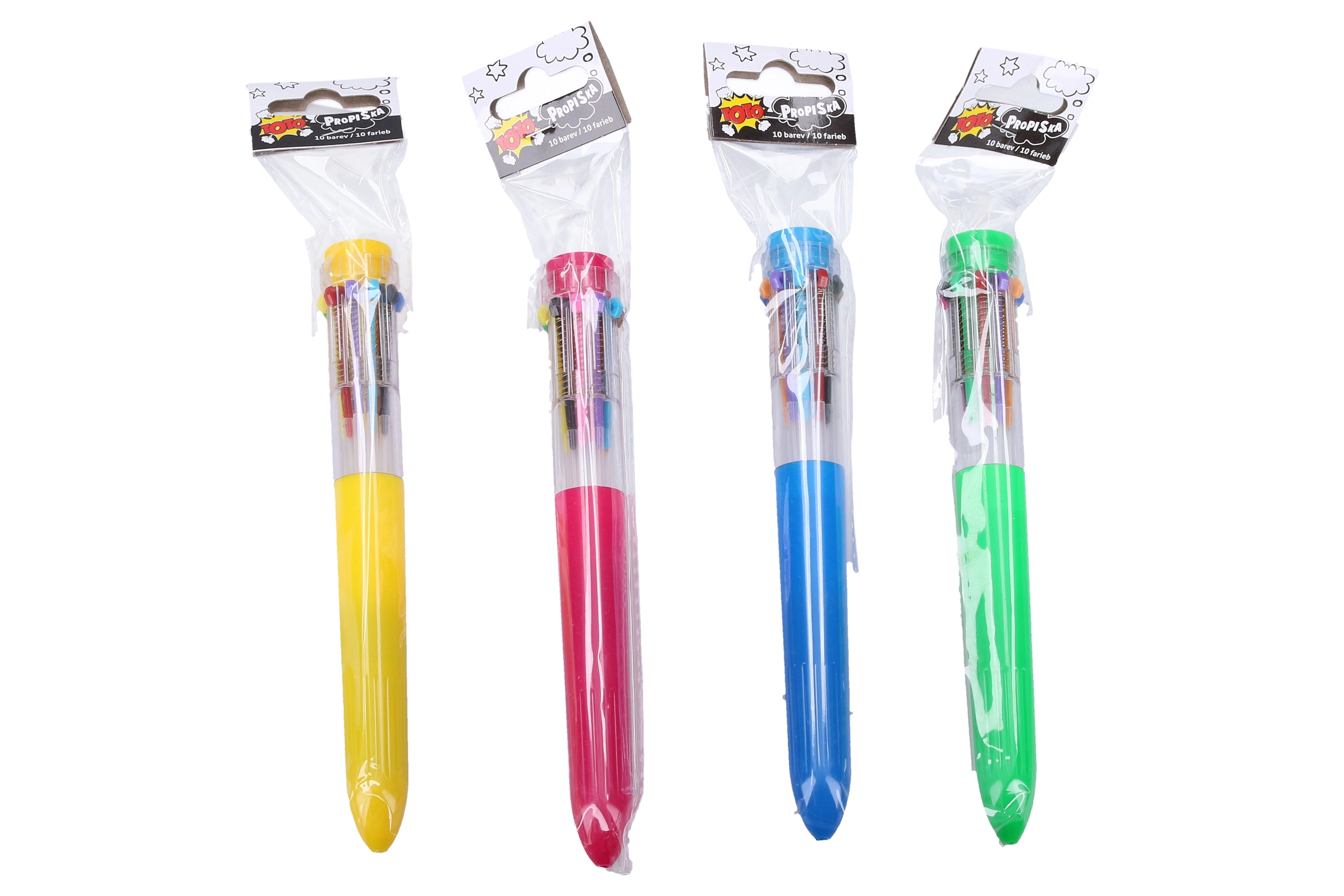Насладете се на писането с многоцветна химикалка, която предлага до 10 различни цвята за вашите бележки и рисунки.