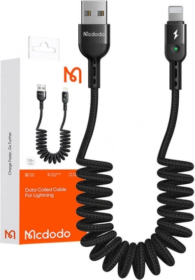 Универсален пружинен кабел за устройства на Apple. Този кабел Mcdodo предлага бързо зареждане и лесна употреба благодарение на пружинния дизайн, който предотвратява заплитането.