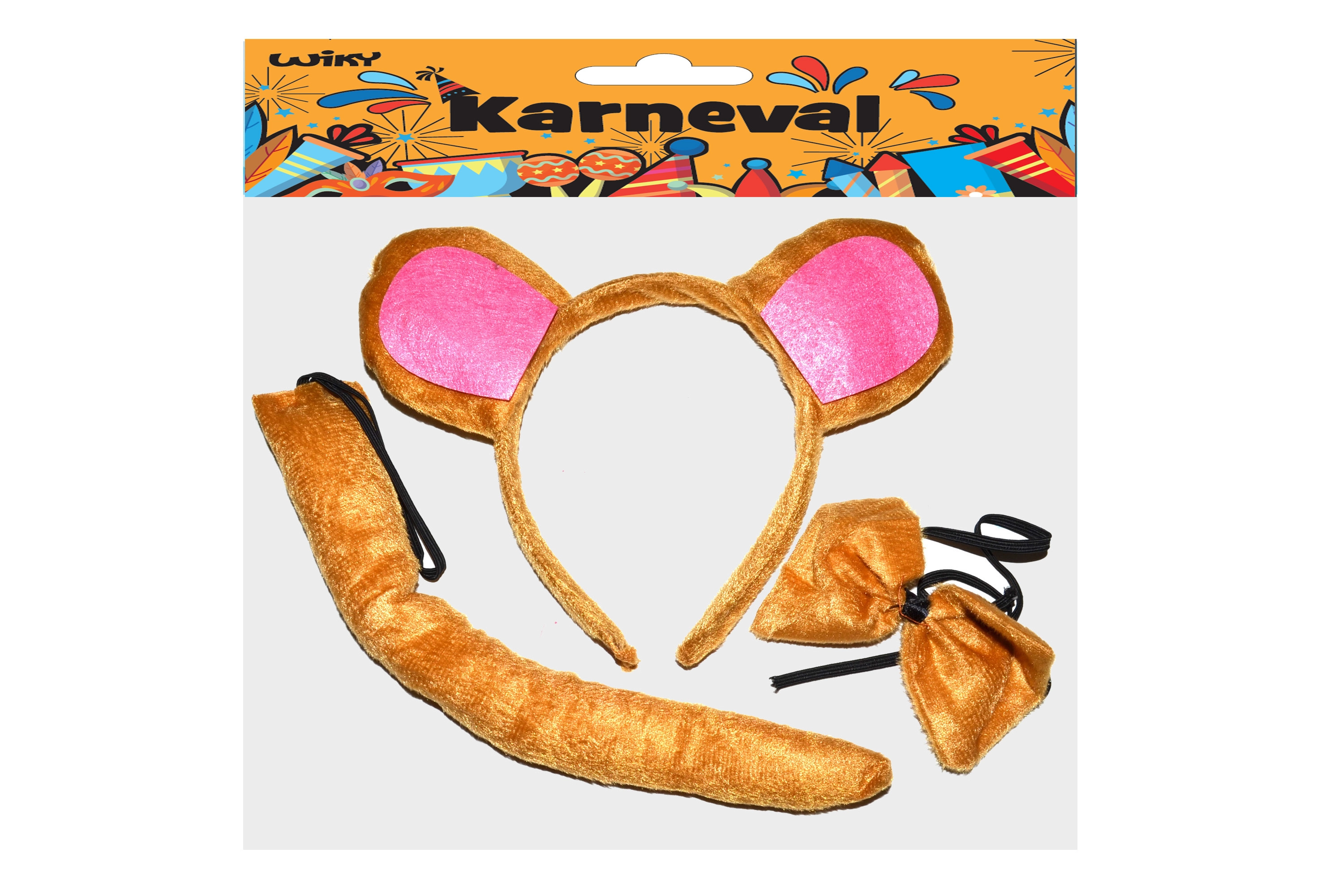 Превърнете се за миг в сладка маймунка! Този карнавален комплект съдържа всичко необходимо за бърза и удобна промяна – диадема с ушички, панделка около врата и съчетана опашка. Страхотен за карнавали, детски празненства и училищни тържества. Подходящ за деца от 3 години.