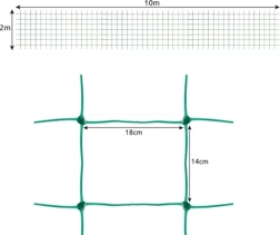 Здравата конструкция от полипропилен (PP) с подсилени кръстоски е лека, но същевременно здрава и устойчива на разтягане. Мрежата лесно се закрепва към колчета, стълбове, рамки или перголи и при необходимост може да се напасне чрез изрязване до желания размер.