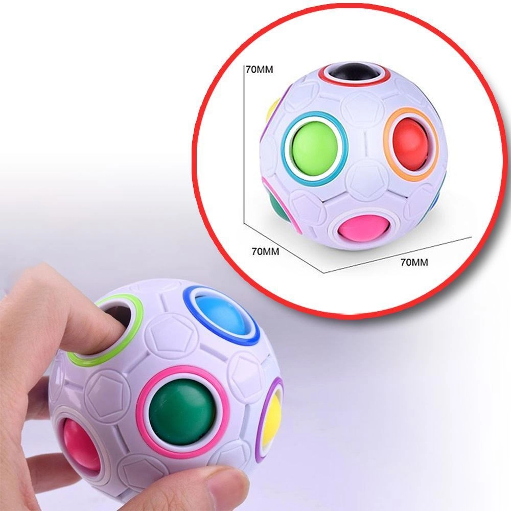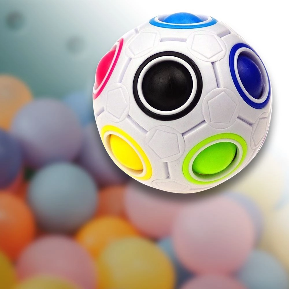 Главоблъсканицата Rainbow Ball е умна и пристрастяваща играчка, която работи на принципа на плъзгащи се пъзели. Задачата ви е да премествате топчетата между отворите и да ги подредите според цветните пръстени. Един отвор без цветен пръстен остава празен и служи като временно място за преместване.