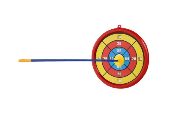 Приложената мишена с ярки цветове и точкови зони мотивира за подобряване на точността и забавно състезание.