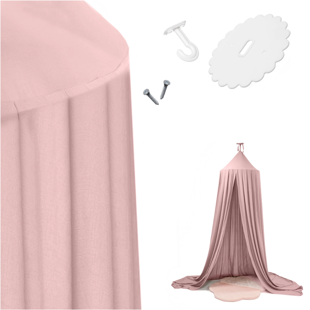 Създайте на децата уютен кът за игра и сън с висящ балдахин в нежeн цвят. Лекият плат и щедрата ширина осигуряват достатъчно уединение и комфорт, а елегантната визия украсява всяка детска стая. В комплекта са включени монтажни елементи за лесно закрепване.