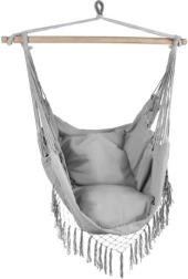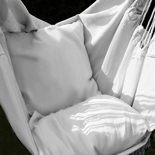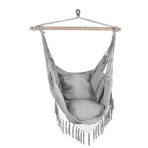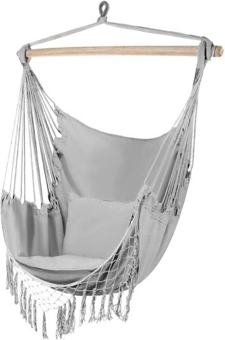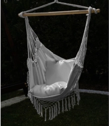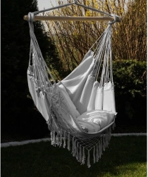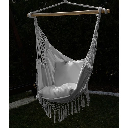 Този удобен висящ стол в хамак стил е създаден за ежедневна почивка – от кратка сиеста до четене на любима книга. Естественият памук с примес на полиестер е приятен на допир, добре вентилира и в същото време запазва висока устойчивост на износване.