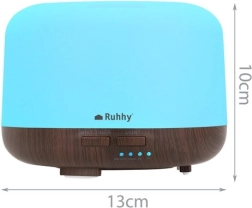 Стилен арома дифузер и овлажнител RUHHY 4 в 1 съчетава овлажняване, ароматерапия, йонизация и LED подсветка. Благодарение на резервоара 300 ml, тихата работа, таймера 2/4 ч, 4 режима на мъгла и до 8 цвята светлина, създавате идеална атмосфера само с едно натискане на дистанционното управление. Компактните размери 13,2 × 10 cm подхождат на всяко помещение.