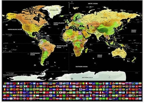 Декоративна карта, която позволява на пътешествениците да отбелязват посетените държави чрез премахване на горния слой. Под него се появяват цветни флагове и детайли за отделните страни.