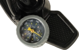 Вграденият и лесно четим манометър позволява да надуете гумите до правилната стойност и да подобрите управлението и издръжливостта им.