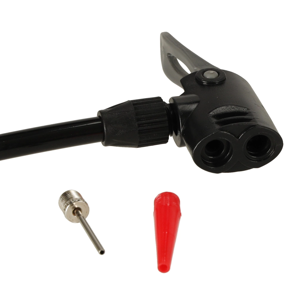 Ергономична ръкохватка, стабилни опорни крачета и маркуч 80 cm улесняват напомпването без усилие. В комплекта са включени игла за топки и адаптер за надуваеми изделия (напр. дюшеци или плувни пояси), така че помпата е полезна у дома, на игрището и по време на пътуване.