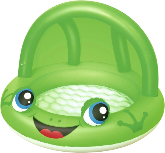 Зарадвайте децата с практично и безопасно решение за горещите дни. Надуваемият детски басейн с покрив осигурява приятна сянка и намалява преките слънчеви лъчи, така че малчуганите да могат да се плацикат по-удобно и по-дълго. Мекото дъно гарантира повече комфорт при седене и игра.