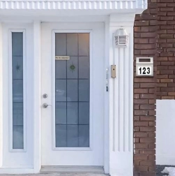 Предлага и компактна конструкция с гладък метален корпус, което осигурява модерен външен вид и устойчивост на атмосферни влияния. Номерът е лесно четим върху всякаква повърхност благодарение на елегантния дизайн и подходящия размер на цифрите.