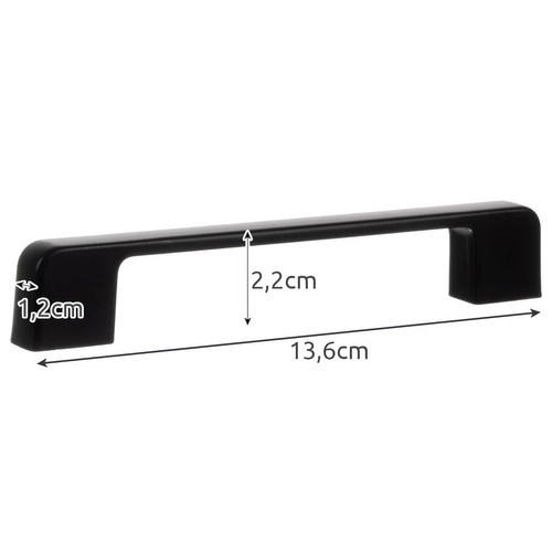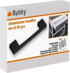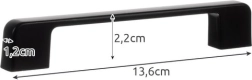 Спецификациите включват черен матов цвят, алуминиев материал и два монтажни отвора с междина 96 mm. Размерите са 10,4 x 2,2 x 1,2 cm, което осигурява здрава и стабилна конструкция за дълъг живот.