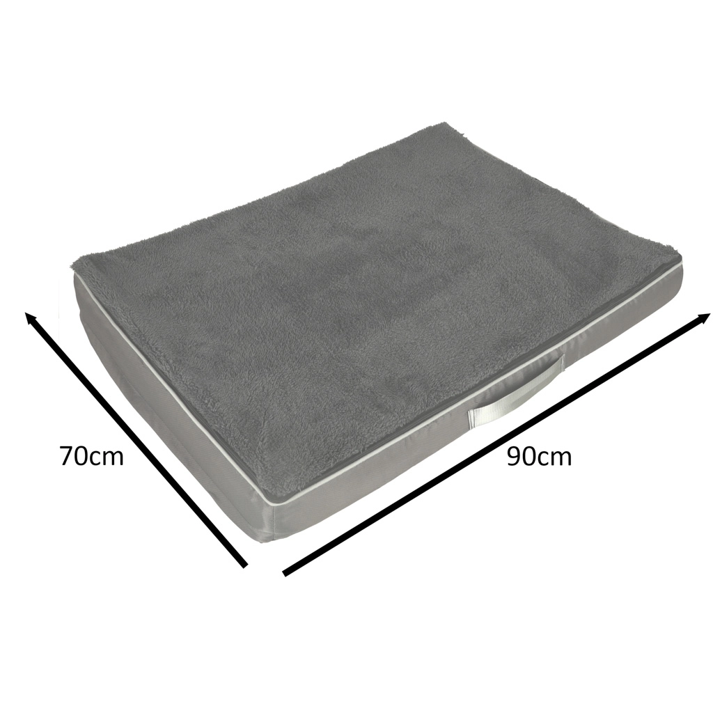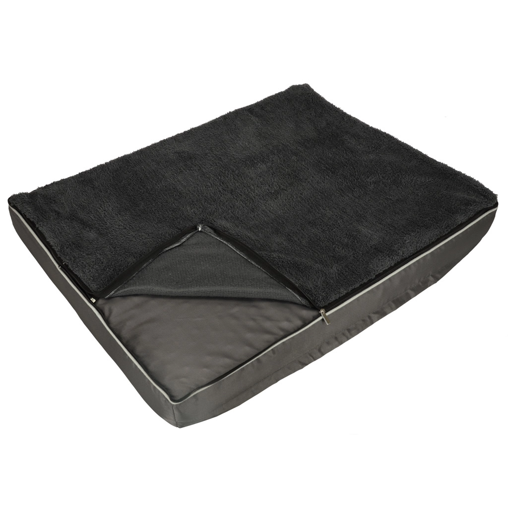 Осигурете на своя любимец качествена почивка с ортопедично легло с размери 90 × 70 × 10 см. Благодарение на ортопедичното пенесто ядро леглото се адаптира към тялото и облекчава ставите и мускулите, което е особено ценено от по-възрастни и активни кучета. Сваляемият и перящ се калъф улеснява поддръжката, а водоустойчивата повърхност предпазва от замърсявания.