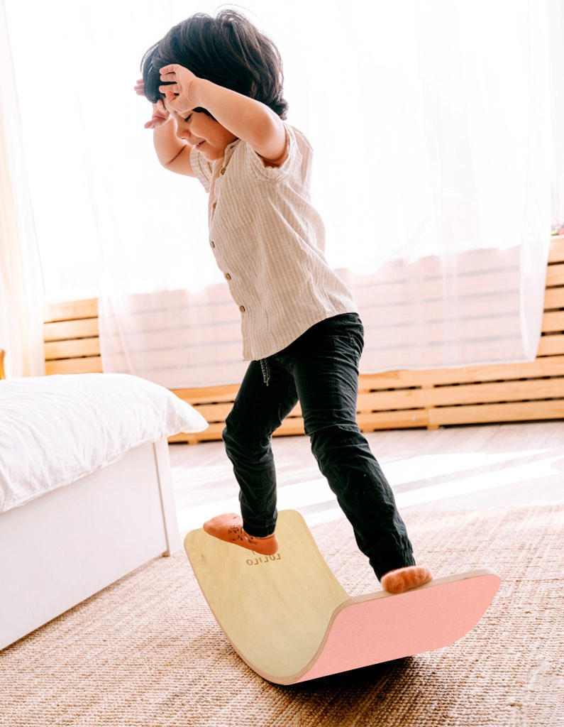 Извивката на дъската мотивира децата към естествено движение, подобрява стабилността, координацията и концентрацията по време на игра.