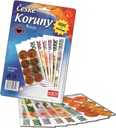 Забавният комплект игра пари съдържа 6 вида цветни чешки банкноти и монети с номинали 10, 20 и 50 CZK. Общо съдържа 149 340 CZK, което е двойно по-голямо количество в сравнение с конкурентни продукти. Този комплект е идеален за деца, които искат да се научат да използват пари, и е подходящ и като учебно помагало за училищно обучение.
