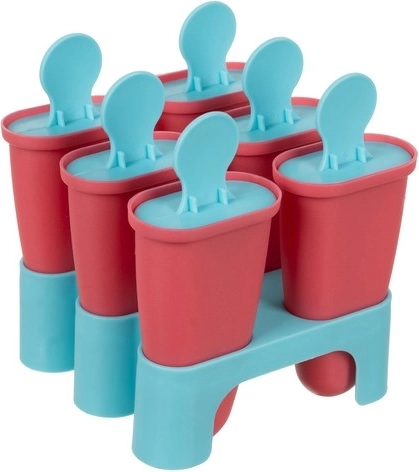 Умната конструкция предлага 6 цилиндрични форми за равномерно замразяване. Капачката функционира като пръчка с удобен кръгъл захват и три отвора за стабилно свързване със замразената смес, така че след изваждане от формата сладоледът не се плъзга. Стабилната основа държи формите идеално във вертикално положение по време на пълнене и замразяване, което минимизира бъркотията.