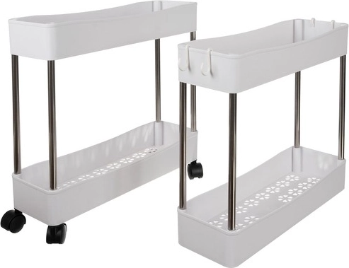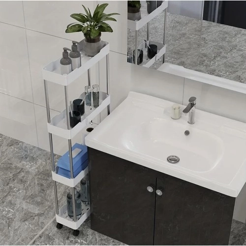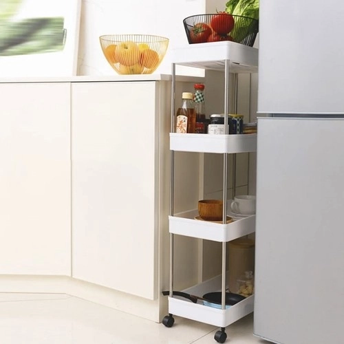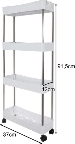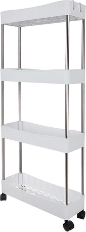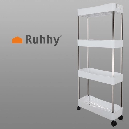 Мобилната етажерка RUHHY е универсално решение за спестяване на място в тесни пролуки и стандартни зони на дома. Благодарение на модулната конструкция лесно персонализирате броя нива според нуждите и я използвате в банята за козметика и почистващи препарати, в кухнята за подправки и бутилки, в кабинета за документи или в перилното помещение за детергенти.