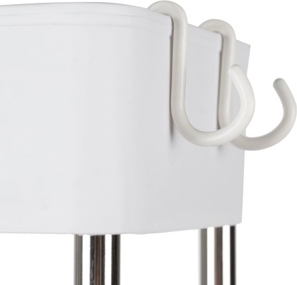 Перфорираните дъна подобряват циркулацията на въздуха и отвеждането на влагата. Страничните куки осигуряват място за кърпи и дребни аксесоари.