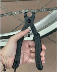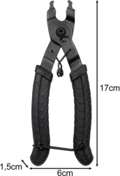 Клещите за бърза връзка на велосипедна верига BIGSTREN са надежден помощник за бърза поддръжка и сервиз на колелото. Здравата изработка от въглеродна стомана се справя и с замърсени или ръждясали връзки, прецизните челюсти осигуряват сигурен захват и чиста работа. Инструментът е проектиран за отваряне и затваряне на бързата връзка, така че демонтажът и монтажът на веригата стават за миг.