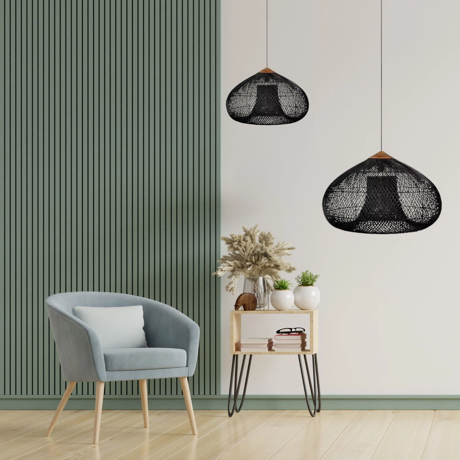 Нашият таванен висящ полилей от ратан и дърво, с диаметър 40 см и височина 35 см, осигурява широк обхват на осветяване, покриващ 10 до 15 м². Перфектно се съчетава с модерни и класически интериори, идеален е за дневни, трапезарии или спални.