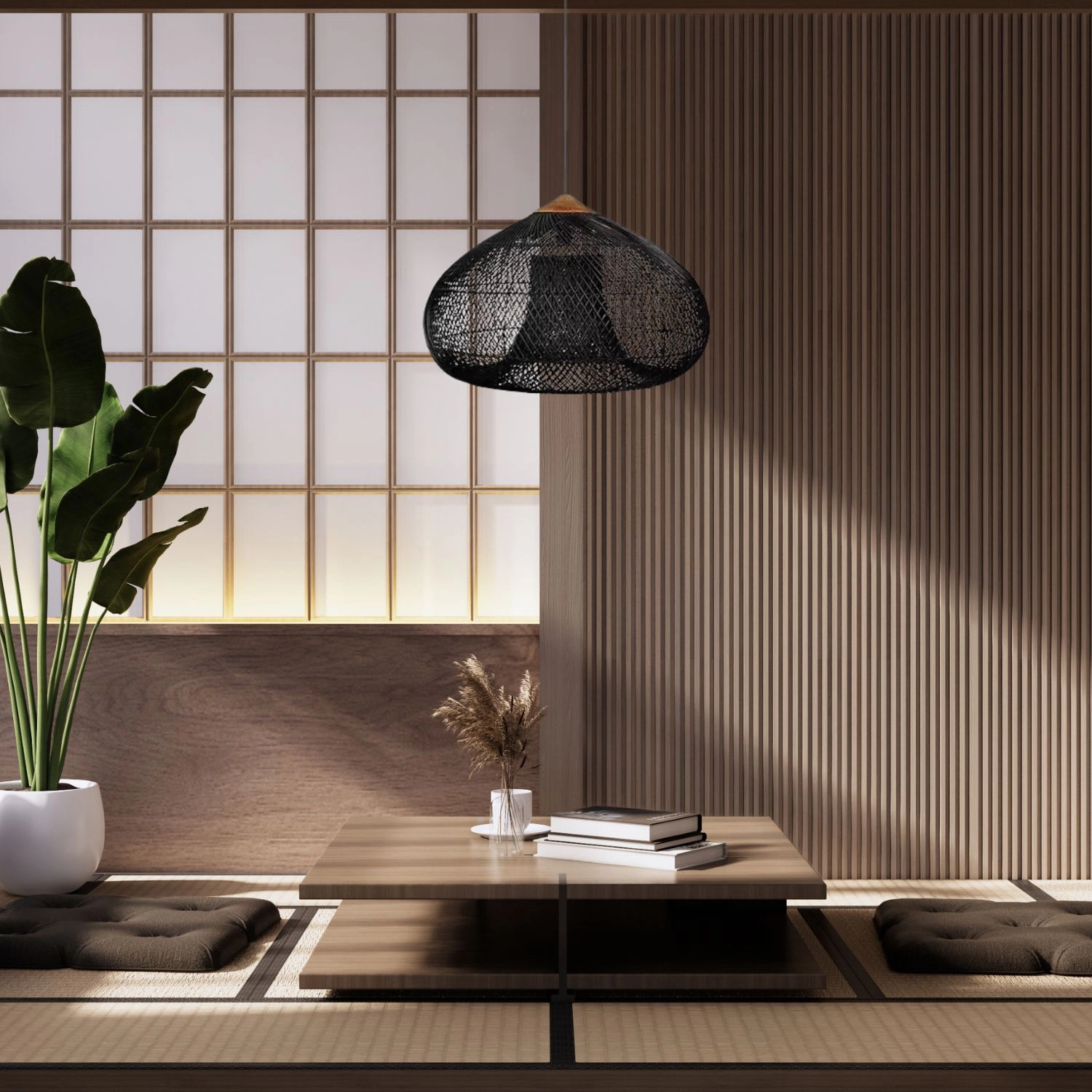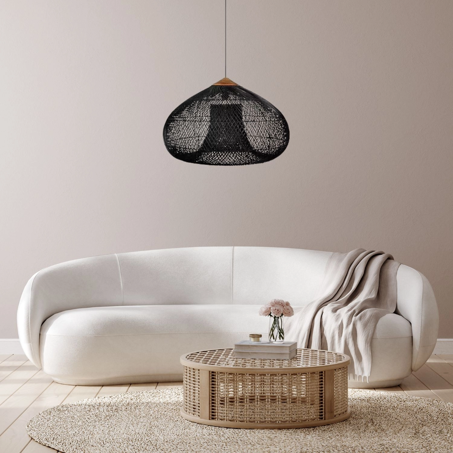 Таванната висяща лампа от естествен ратан е идеална за различни интериорни решения, носи топлина и елегантност. Отличен избор за дневни, трапезарии, спални, както и за търговски пространства като кафенета или ресторанти.