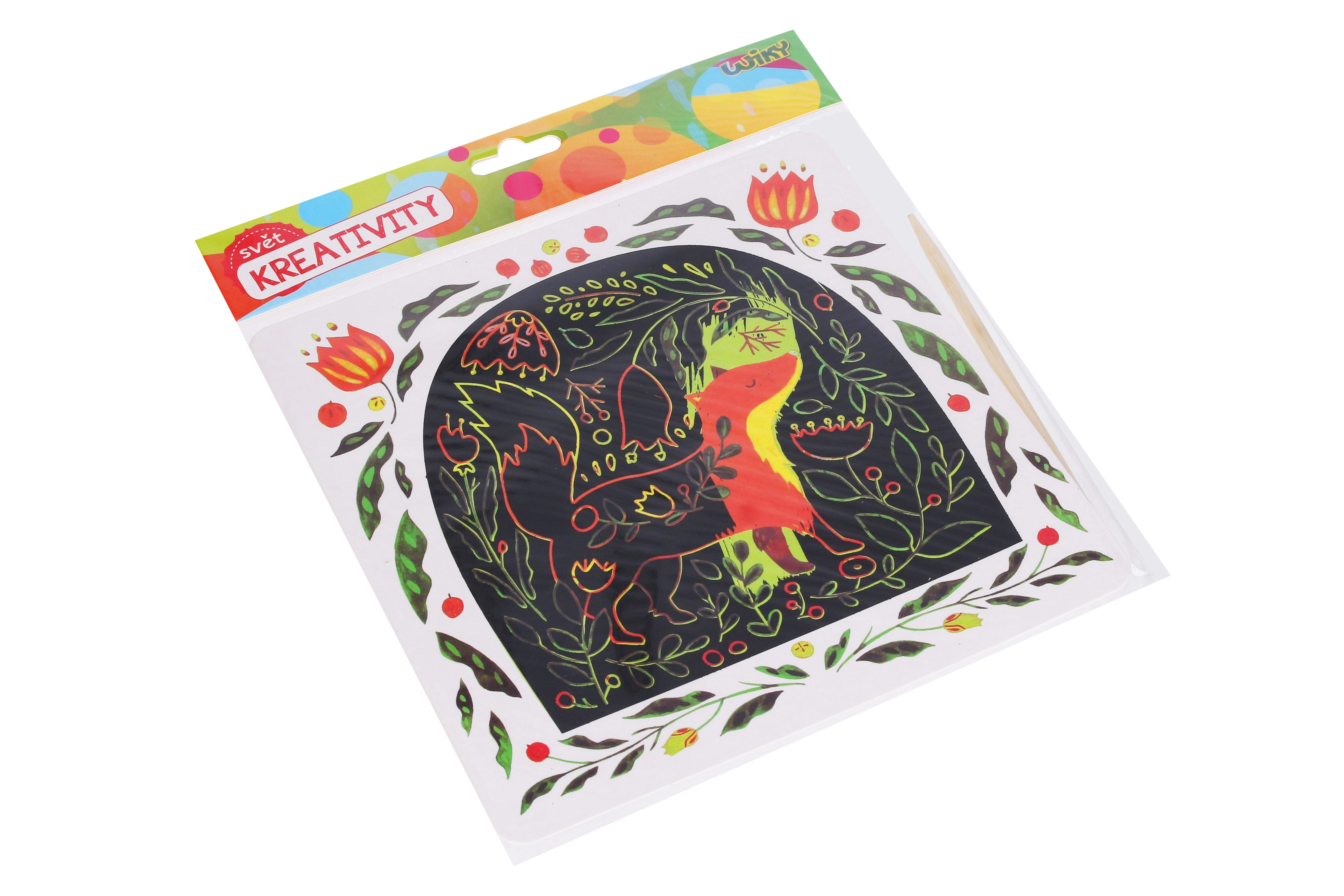 Открийте своята креативност с нашата скрапкартина с размери 20x20 см. В комплекта ще намерите стъргалка и картинка, която можете да украсите според въображението си.