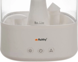 Овлажнителят се управлява лесно благодарение на предните сензорни бутони, които позволяват да регулирате количеството отделяна пара и да изберете предпочитания осветителен режим. Подходящ и за аромотерапия — с добавяне на капки етерично масло ще създадете релаксиращ аромат.