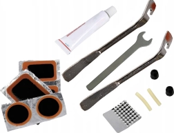 Включва лостчета за демонтаж на гуми, ключ за колела и други важни инструменти, които улесняват ремонта по време на път.