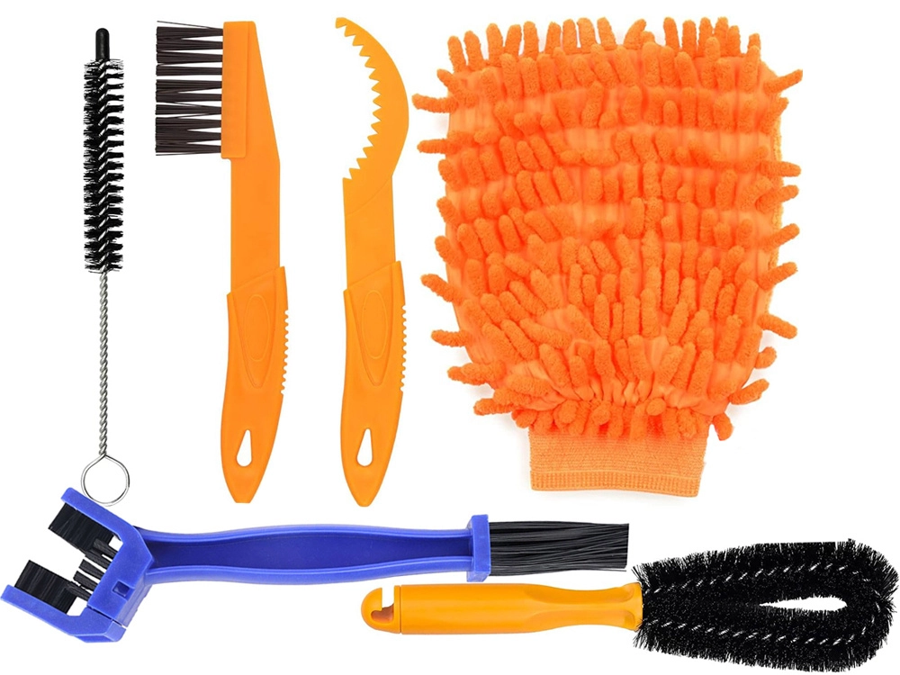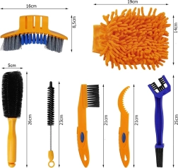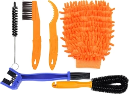 - четка за гуми, ръкавица от микрофибър, тясна четка за пролуки, кука/стъргалка за касета, четка за верига, универсална четка, четка за касета