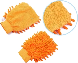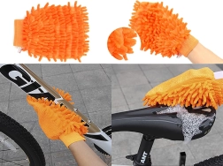 Попиваща ръкавица от фин микрофибър безопасно измива рамката, вилката и чувствителните части и оставя повърхността без следи.