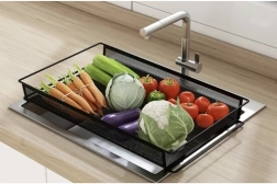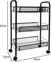 Благодарение на универсалните размери 65 × 44 × 25 cm се побира и в по-малки пространства. В комплекта ще намерите и практични куки за закачане на кърпи или кухненски принадлежности и монтажен комплект за бързо сглобяване. Черното матово покритие е устойчиво на корозия и се почиства лесно.