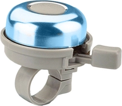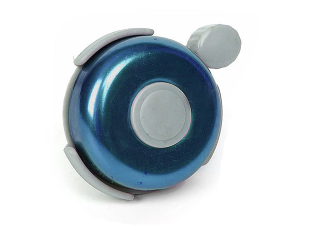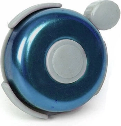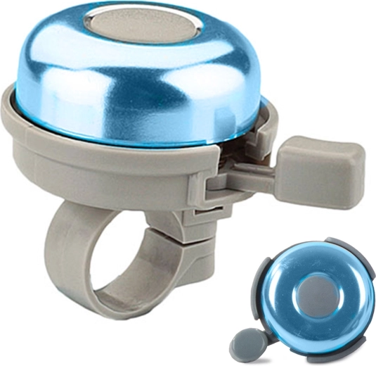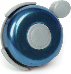 Този метален звънец за колело е надежден предпазен аксесоар, който повишава вашата видимост и чуваемост в трафика. Компактният дизайн с палцов лост позволява удобно управление по време на каране, а класическият вид в син цвят подхожда на повечето велосипеди и тротинетки.