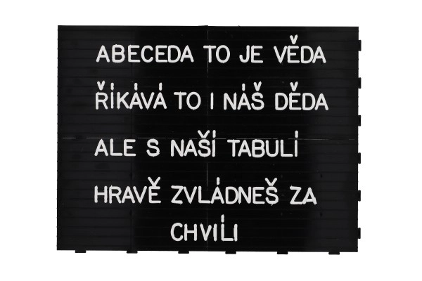 Този пъзел съдържа пластмасови букви и цифри, които лесно се притискат в подготвените подложки. Децата могат да създават различни думи, изречения или надписи, което им помага да развиват езиковите си умения по забавен и практичен начин.