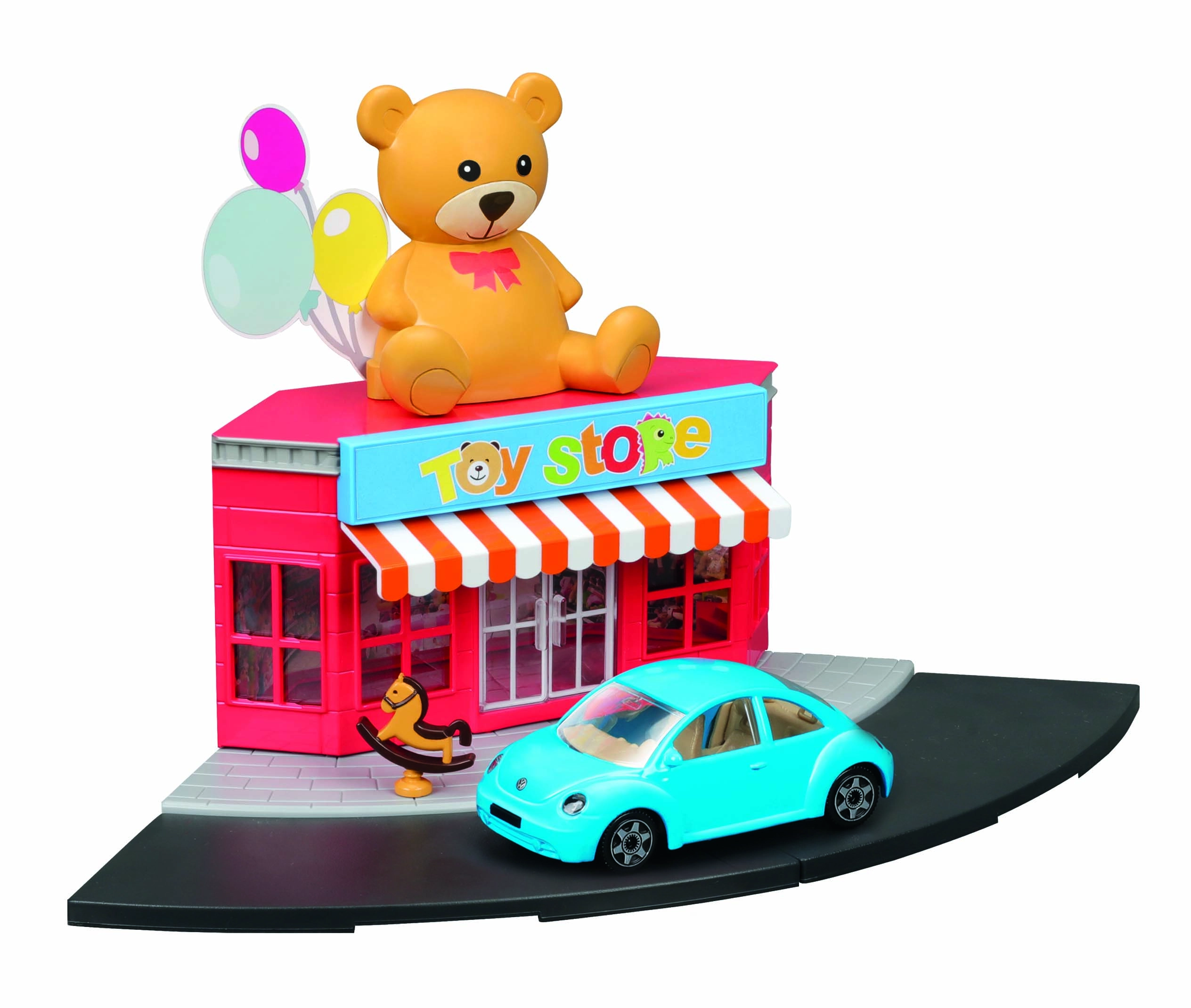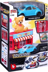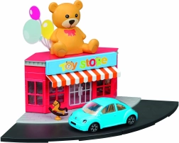 - Пластмасова сграда на магазин за играчки, метален модел автомобил 1:43, улични и тротоарни елементи, аксесоари