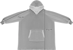Завийте се в уют с този XXL oversize суичър–одеяло в сив цвят. Комбинира мека фланела отвън и топъл плюш отвътре, има качулка и голям кенгуру джоб за ръце и дребни вещи. Универсалната свободна кройка е идеална за мързелуване, четене и гледане на телевизия и осигурява максимална топлина и комфорт в студените дни.