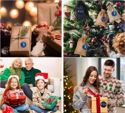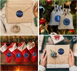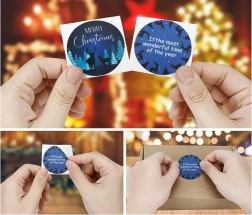Съдържа до 500 стикера с осем различни коледни мотива, които придават на всяка опаковка празнично очарование.